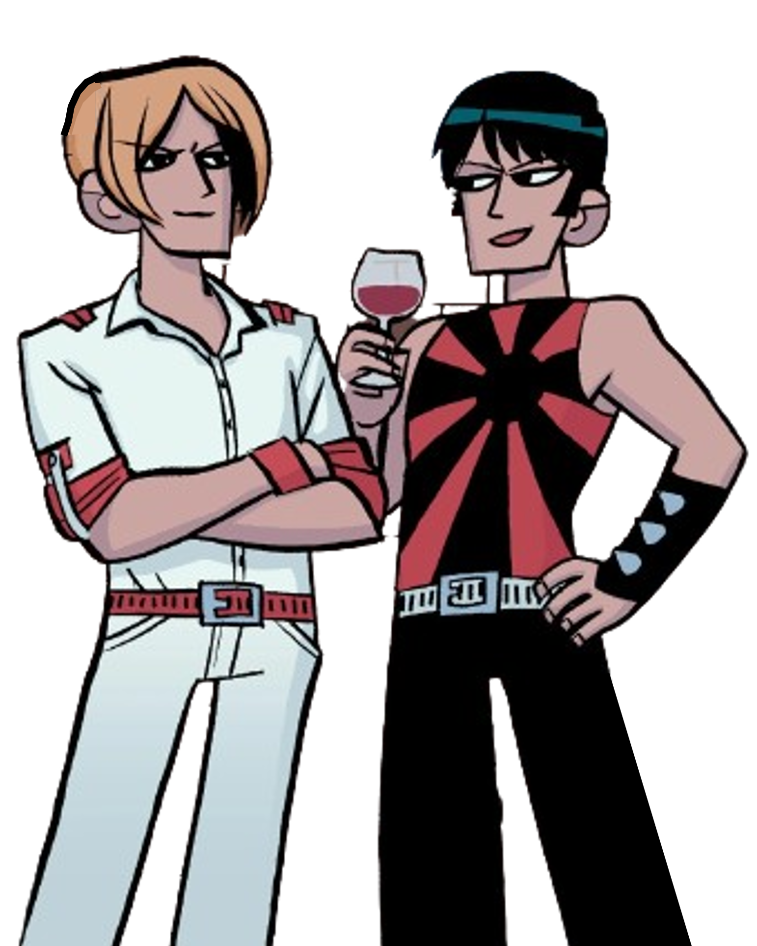It is known that Ramona used to date both twins at the same time, but without each knowing about the other (basically cheating on both of them). When the truth was revealed, the twins had sworn to always do everything together from that moment on. There seems to be no hostility between the two considering their former relationship with Ramona. They seem to place the blame solely on her. Scott ends up having to fight the twins 4 times before really winning the battle.