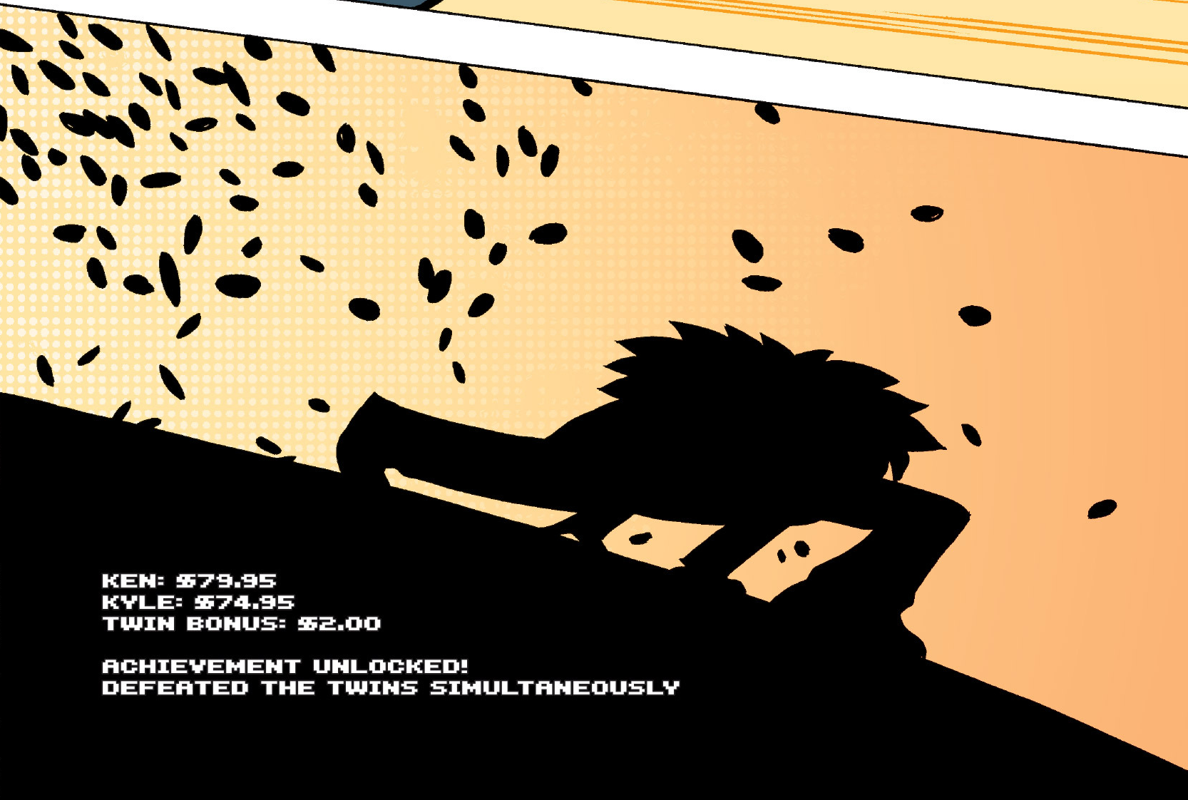 Whenever they use their combinations, their bodies temporarily turn completely black (Ken) and white (Kyle), fitting with the Yin and Yang theme. Once the twins are defeated, they explode into mini dragons that dissolve to nothing leaving behind coins plus a $2.00 twin bonus (Kyle $14.95, Ken $17.95). Just like in the comic, there is an achievement/trophy for beating both twins at once.