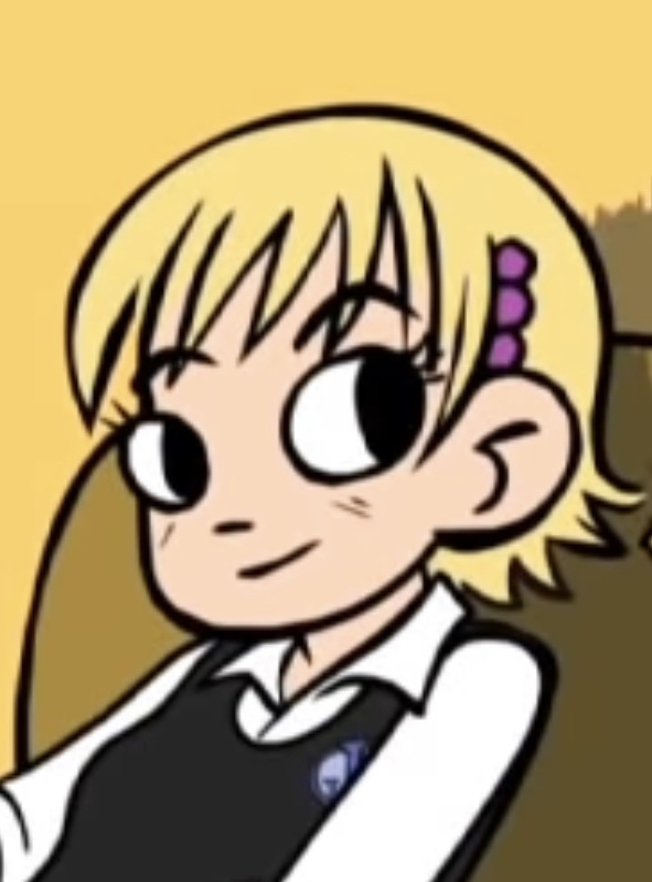 She first appeared in Volume 2 in a flashback, when Scott first went to St. Joel's Catholic High School. She would become close friends with Scott and Kim, and the three would form their band, Sonic & Knuckles. However, Scott found her irritating initially, and while their attraction was mutual, neither of them were willing to make the first move.