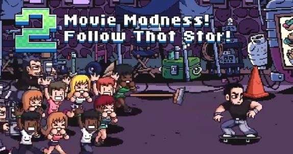 The stage starts with Lucas Lee being followed by crazed fans and Paparazzi, When Lucas goes off the end of the screen, the paparazzi will turn their attention to the character(s) attacking with a infuriating flash attack that will stun the character(s). Near the start of the section there is a "Fancy Chip Wagon" the only shop in the entire stage. Slightly further on, the character(s) will wander into a set when filming starts, where Johns will run pass and explode, after that, the character(s) will face an array Aliens and Raxzillas, before the motion capture suit wearing Camerons jump out of the green screen and run pass the set, and are easily defeated before filming ends. After this, the character(s) will see Lucas Lee trying to disarm a nuclear warhead which the character(s) must quickly destroy lest it blow them up.